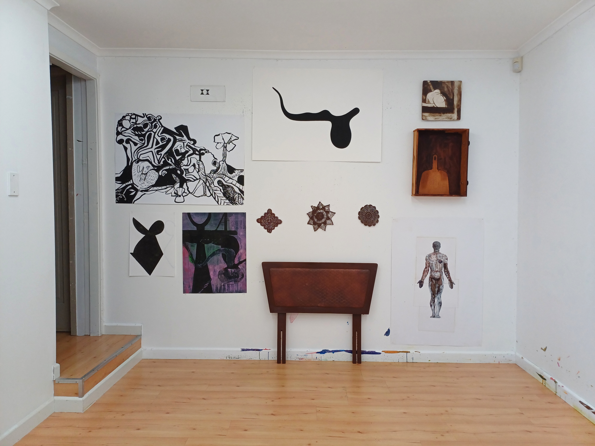 The final meeting /The family retreat 2025 Ink on prepared loose linen 1340x960 ![]() Hooks 2025 Ink on prepared loose linen 1870x1370 ![]() Studio 2024 works for Quiver series ![]() Quiver 2024 Ink on loose linen 1500x1100 ![]() Dive 2024 ink on loose linen 1500x1100 ![]() ![]() Nest building and Leap 2024 Ink on prepared linen 960x1340 ![]() Free hand 2024 Ink on prepared linen 960x1340 ![]() Tuck 2024 1500x1100 ink on linen with stitching ![]() Drift 2024 1500x1100 ink on linen ![]() Gate 2024 Ink on loose linen 1430x1400 ![]() Bands 2024 ink on loose linen 1650x1250 ![]() Sequence 2024 Ink on loose linen 1200x1610 ![]() Studio with Disc 2023 and Trim 2022 ![]() Bird house 2024 Inks on prepared linen 1800 diameter ![]() Union 2023 Inks on prepared linen 1800 diameter ![]() Disc 2023 Inks on prepared linen 1800 diameter ![]() Cloak of protection 2023 Inks on prepared linen 1900 diameter ![]() Time keeper 2023 Inks on prepared linen ![]() Span 2023 Ink on prepared linen ![]() Containers 2023 Ink on prepared linen ![]() Milligan's high key affliction 2023 Inks on prepared linen ![]() High Volicity 2023 Inks on prepared linen 1900 diameter ![]() ![]() Drums 2023 Inks on prepared linen ![]() Vista 2023 Inks on shaped linen 1900 x 1800 ![]() Marker 2023 Inks on linen ![]() Cup 2023 Inks on linen and linen cutout ![]() Sleeve 2023 Inks on linen 1300x200mm ![]() Helm 2023 Ink on prepared linen ![]() Vessel 2023 Ink on prepared linen ![]() Obstacles 2023 Inks, chalk and linen off cuts on linen 2100x 1840 ![]() Untitled 2022 Inks on linen 1020x720 ![]() Skeleton keys 2022 Ink on linen ![]() Fanfare 2022 Acrylics on linen 1900x2010 ![]() Fan 2023 Inks on prepared linen ![]() Cascade 2022 Inks on linen 1020x720 ![]() Off cuts 2022 Inks on linen 1980x3040 ![]() Threshold 2022 Inks on linen 1980x3070mm ![]() Tapestry 2022 Inks on linen 1980x2020 ![]() ![]() Boat 2022 Acrylic on linen 1050x3100 ![]() Trim 2022 Acrylic on Canvas 750x3000 ![]() Adolescent 2022 Ink on stretched linen 1400x900 ![]() Fire Beetles 2021 Acrylic on linen 1600x1200 ![]() Beginning and end 2022 Acrylic on linen 1050x3100 ![]() ![]() Paper Planes 2022 Acrylic on Paper 1040x3040 ![]() Changing the Record 2022 Acrylic on Paper 1040x3040 ![]() Nebulous 2022 Acrylic on linen 1050x3100 ![]() Compass 2022 Acrylic on linen 1200x1600 ![]() ![]() Bow and Recording 2022 1600x1200 ![]() ![]() Entaglement 2021 Acrylic on Linen 1100x900m ![]() Spilling over 2021 Acrylic on Linen 1100x900mm ![]() Meter 2021 Acrylic on Linen 1100x900m ![]() Meeting house 2021 Acrylic on linen 550x450 ![]() One thing leads to another 2021 Acrylic on linen 450x550 ![]() Nest 2021 Acrylic on linen 450x550 ![]() Hot house 2021 Acrylic on linen 1520x1120 ![]() Prickle 2021 Ink on prepared paper ![]() Bee keeper 2021 1220x1520mm ![]() ![]() Bouquet 2020 1500x1100 Acrylic on linen ![]() Fall 2020 1370x1020mm Acrylic on linen ![]() Mechanism 2020 1020x1370 Acrylic on linen ![]() The Radio show 2020 1220x1520 Acrylic on linen ![]() On the trail 2020 Acrylic on linen 1520x1120 ![]() Family Lounge 2020 Acrylic on linen 450x550 ![]() Peninsula 2020 450x550 Acrylic on linen ![]() Soothsayer 2020 1000x1400 ![]() The finishing line 2020 1000x1400 ![]() The Market 2020 1000x1400 ![]() Exit 2019 1400x1000 ![]() Nest building 2019 1400x1000 ![]() ![]() Faithful companions 2019 series ![]() ![]() ![]() ![]() ![]() ![]() ![]() ![]() ![]() ![]()